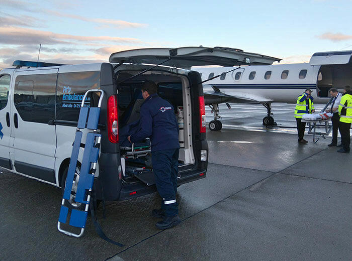 Un ambulancier diplômé d'état (DEA) et un Auxiliaire Ambulancier (AA) ou un second DEA vous accompagne lors de votre transport .